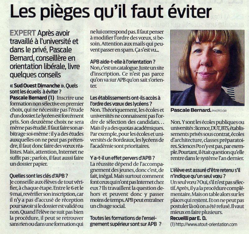 La revue de presse des publications qui ont réalisé un sujet sur ATOUT ORIENTATION...
